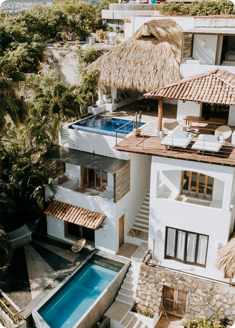 Esta espaciosa villa, construida en cuatro niveles, ofrece espacios únicos diseñadas para desconectarse, crear y disfrutar en contacto la belleza natural de las costas del pacífico mexicano.