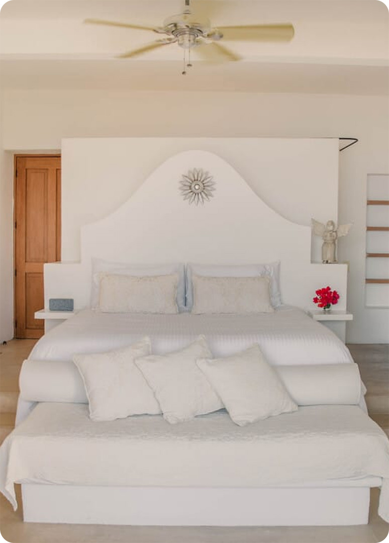 Casa del Cielo cuenta con 6 recámaras, estudio, dos albercas, sala comedor, cocina equipada, asador, así como terrazas y balcones privadas y aire acondicionado en cada una de sus habitaciones.